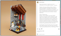 - Dziś przed Państwem obiekt, który znajdował się przy trasie tramwaju elektrycznego, a mianowicie kamienica Rosy Brix przy Kronprinzessin Stephaniestraße 46 (obecnie ulica Głęboka 46), tyle że jest to model wykonany z klocków LEGO. Pani Brix zajmowała się wyrobem szczotek i ich sprzedażą wraz z drobną galanterią skórzaną w sklepie we własnej kamienicy, który posiadał zdobny szyld (niestety nie zachował się do naszych czasów - w załączeniu zdjęcie ze zbiorów Muzeum Śląska Cieszyńskiego). Model obrazuje stan kamienicy z okolic roku 1900, a dla urozmaicenia dodałem Panią Brix z kotem i przechodnia z psem przechadzających się po ulicy Głębokiej (która w tym miejscu jest chyba najbardziej stroma) oraz flagę w barwach Śląska Austriackiego i ptaszka na dachu.